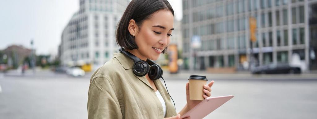 Mit der WordPress‑App aktualisierst du Beiträge, passt Gutenberg‑Blöcke an und prüfst Previews auf kleinen Displays. Alt‑Texte, Bildkomprimierung und interne Verlinkung hebst du direkt nach. Berichte uns, welche mobilen Publishing‑Hürden dir noch im Weg stehen.